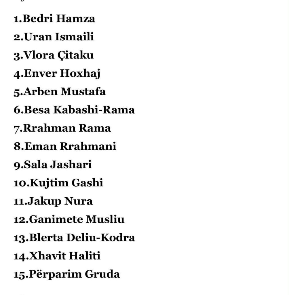 Kështu duken top 15-shja e Listës së PDK-së, e cila pritet të publikohet nga ora në orë, me afatin deri para pas-mesnate.